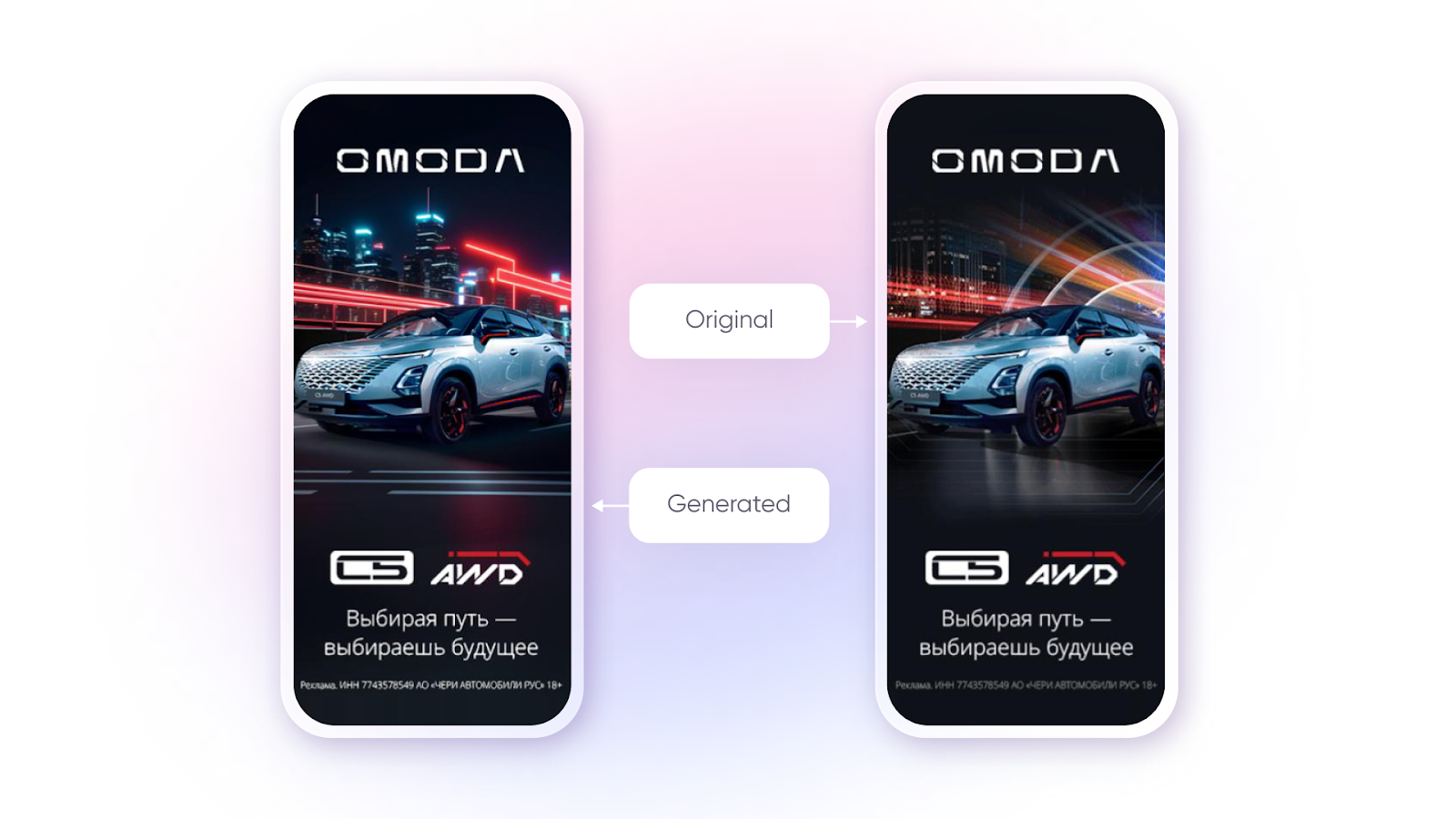 Это инструмент на базе искусственного интеллекта, который генерирует новые версии рекламных баннеров, сохраняя ключевые элементы и рекламное сообщение. Пользователь может загрузить существующие креативы или выбрать их из прошлых кампаний, после чего система создает разнообразные версии с обновленными визуальными решениями.